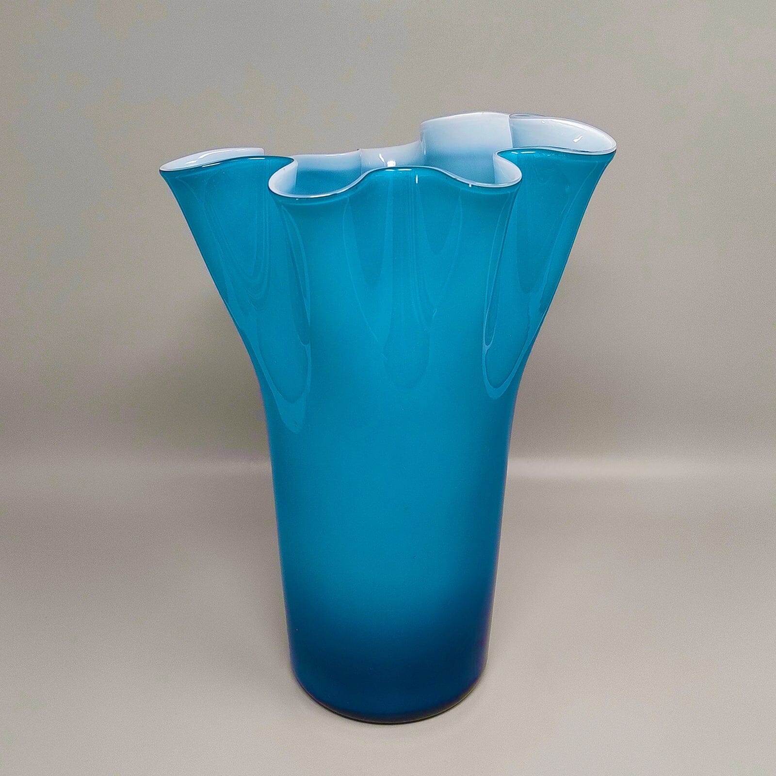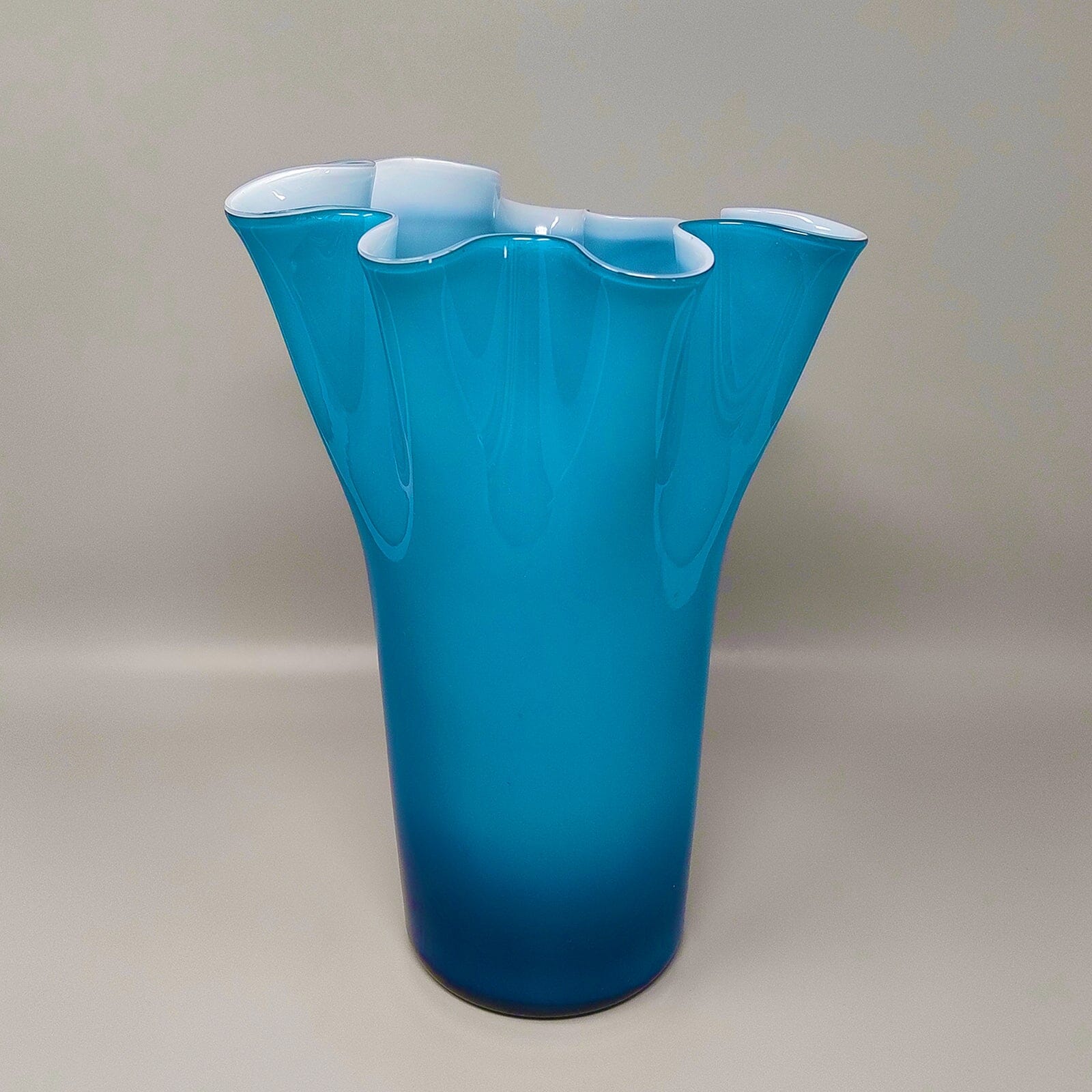 1960s Astonishing blue fazzoletto vase by Ca' Dei Vetrai in Murano glass. Made in Italy. The item is in excellent condition.