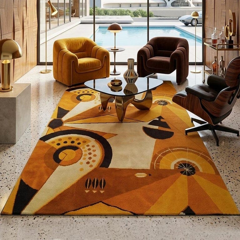 Beyond Rare: The Pair We must emphasize a detail that elevates this offering from extraordinary to truly exceptional: we possess a second rug with the exact same design but a slightly different color palette. To call these pieces "rare" would be an understatement. Having both available at the same time is almost unheard of in the vintage collecting world. Displayed together, the visual impact is absolutely mind-blowing. They form a spectacular diptych of textile art, offering a once-in-a-lifetime opportunity to create breathtaking visual continuity in a large space or across adjacent walls.