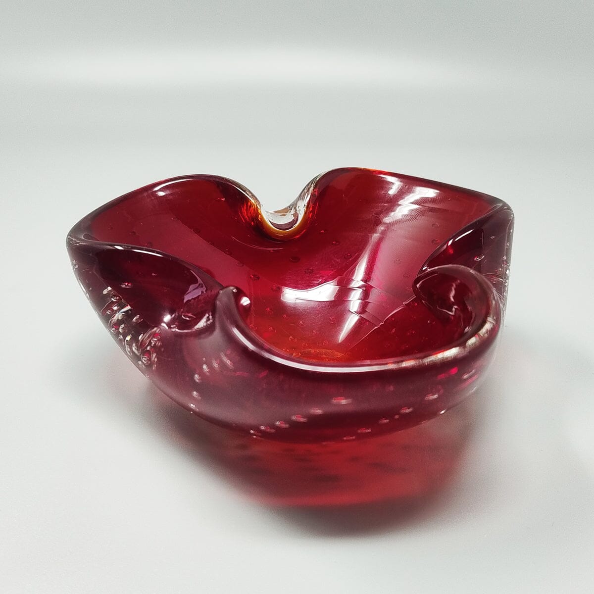 1960s Gorgeous ashtray or catchall by Flavio Poli for Seguso in Murano sommerso glass. Made in Italy