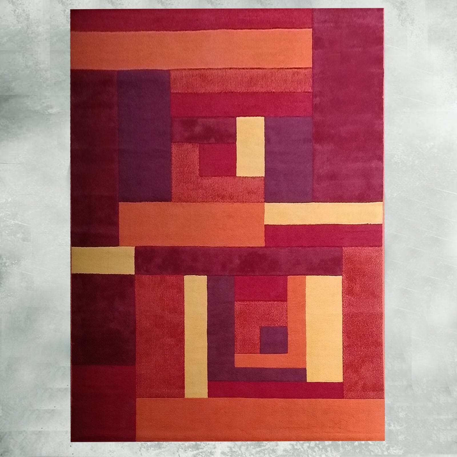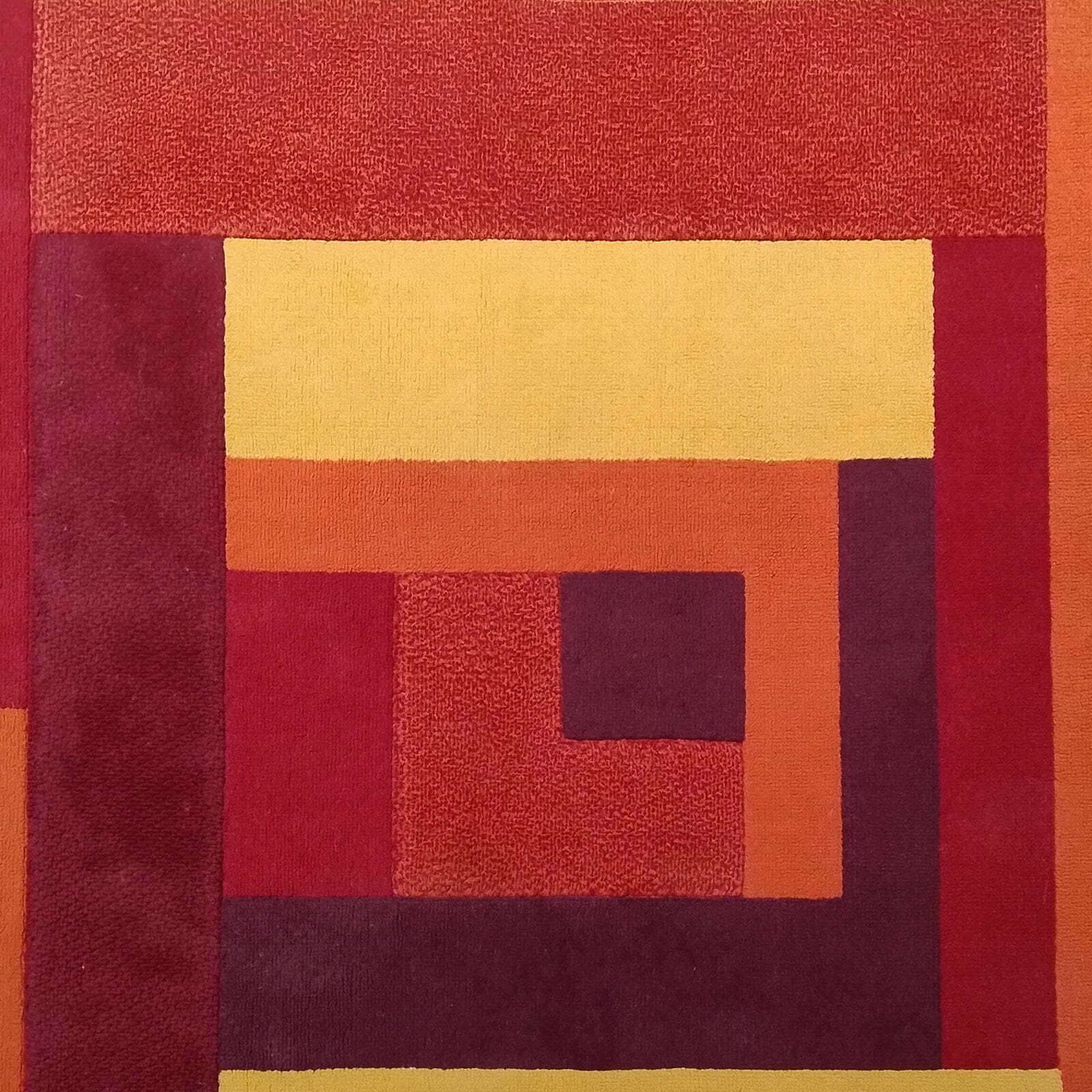 1970s Stunning space age rug with a beautiful geometric design. Pure wool made in Italy. In excellent condition. This rug is unique. A true work of art from the 70s. It has been professionally washed and disinfected and is ready for use.