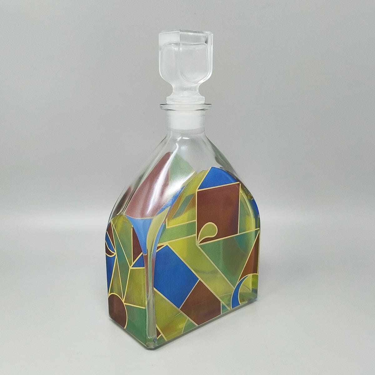 1970s Stunning decanter or decorative bottle colored in crystal by Luigi Bormioli in excellent condition. Made in Italy