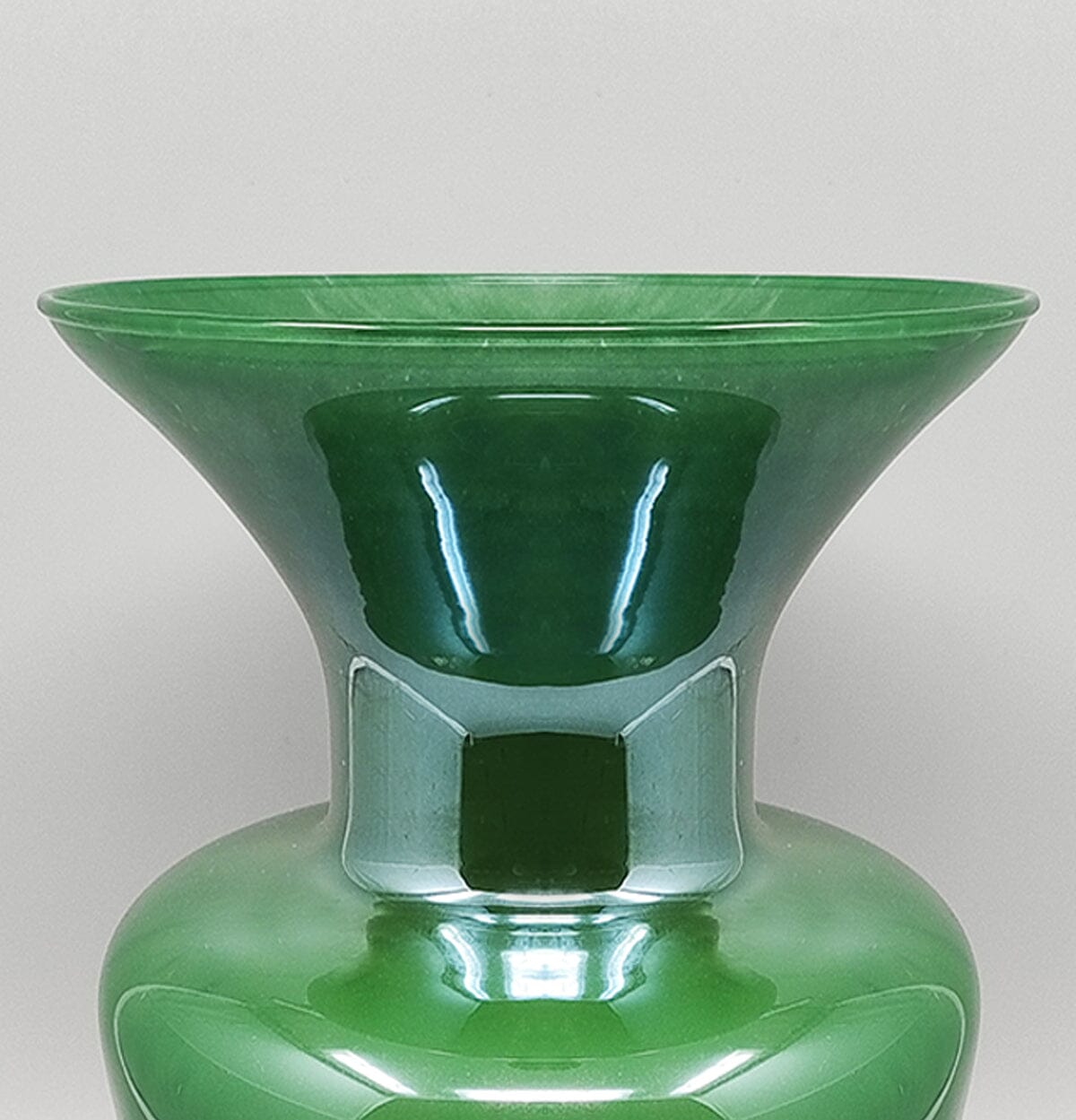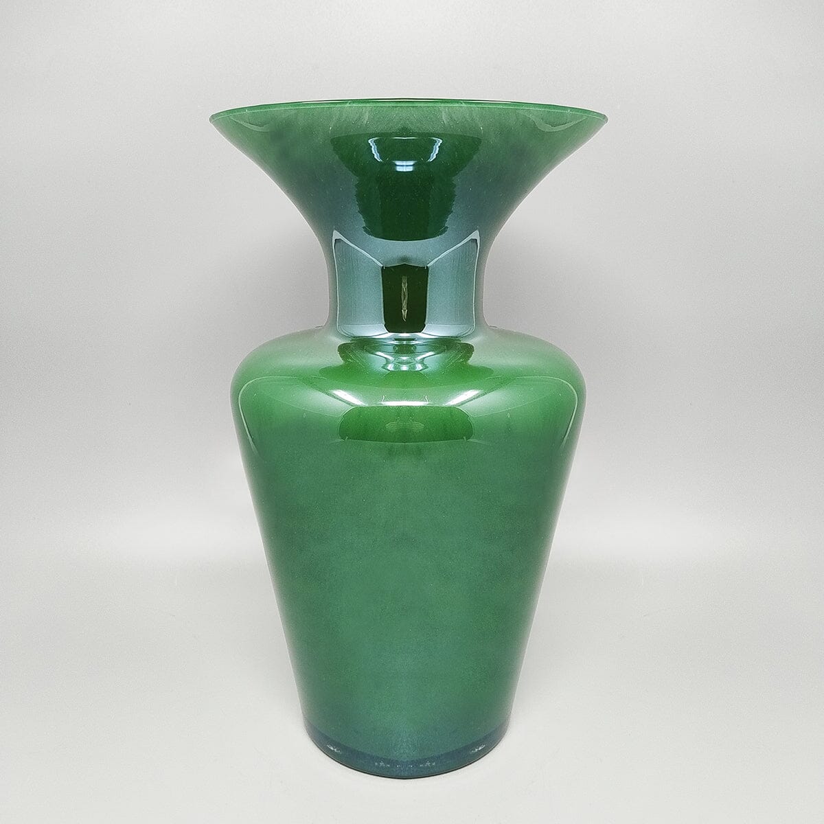 1970s Luxury handcrafted green vase in Murano glass by Maestro del Vetro. Made in Italy.