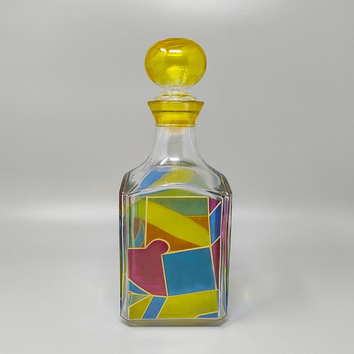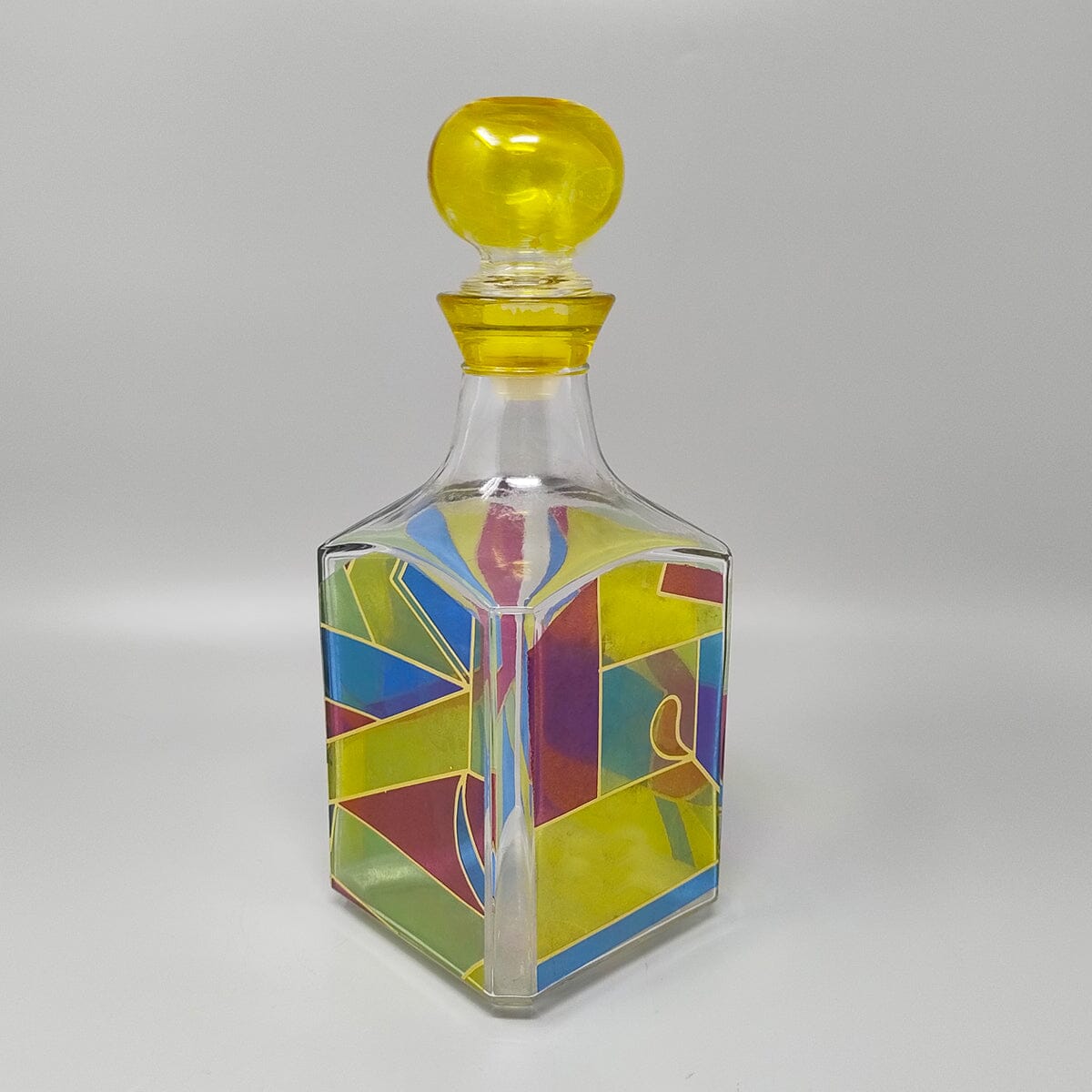 1970s Stunning decanter or decorative bottle colored in crystal by Luigi Bormioli. This bottle is a piece of art. Made in Italy. It's in excellent condition.