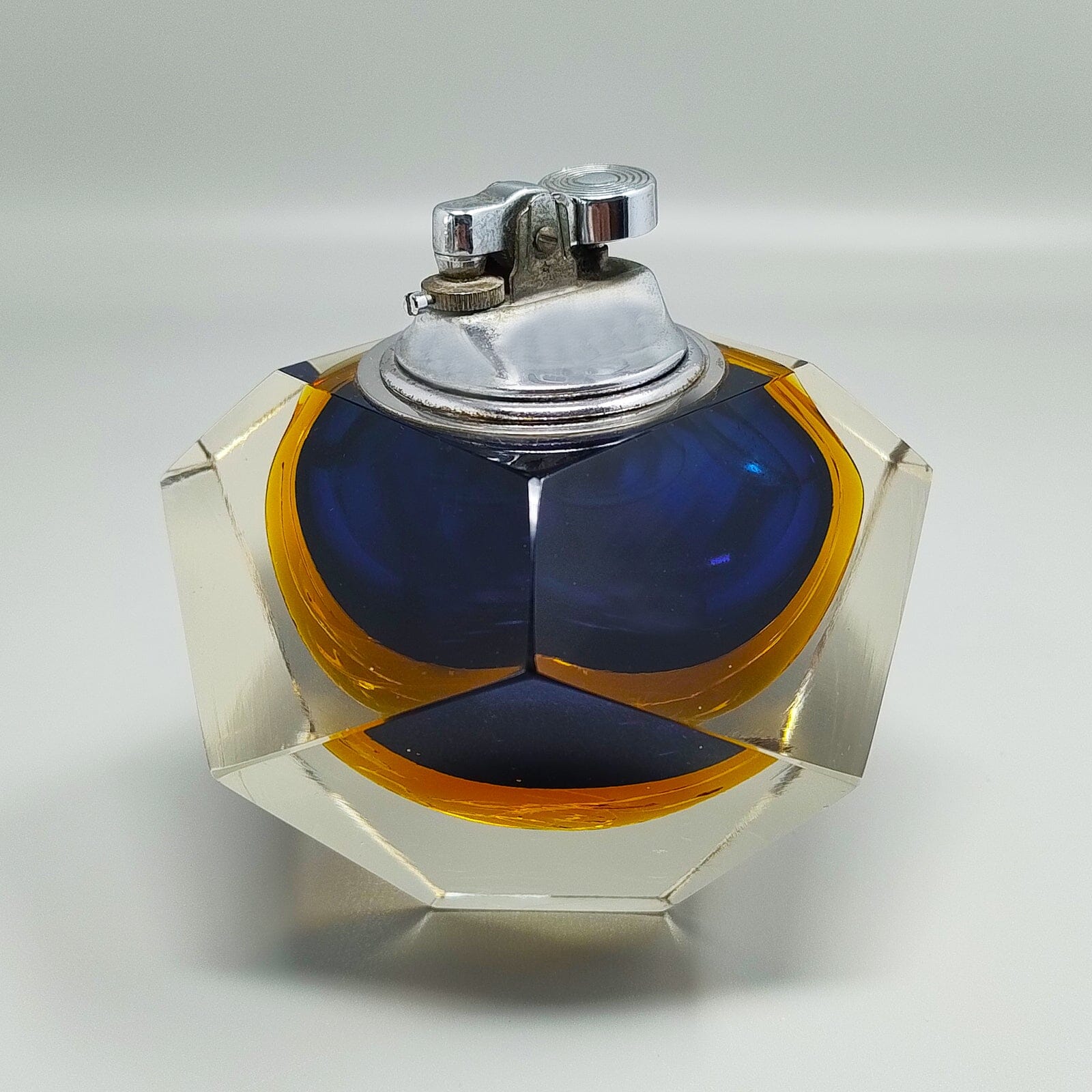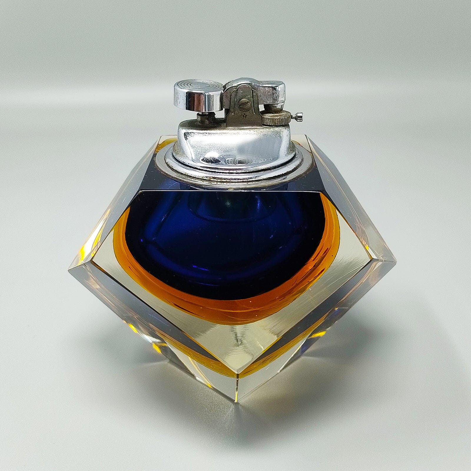 • Load image into Gallery viewer, 1960s Stunning Blue Table Lighter in Murano Sommerso Glass By Flavio Poli for Seguso Madinteriorart by Maden